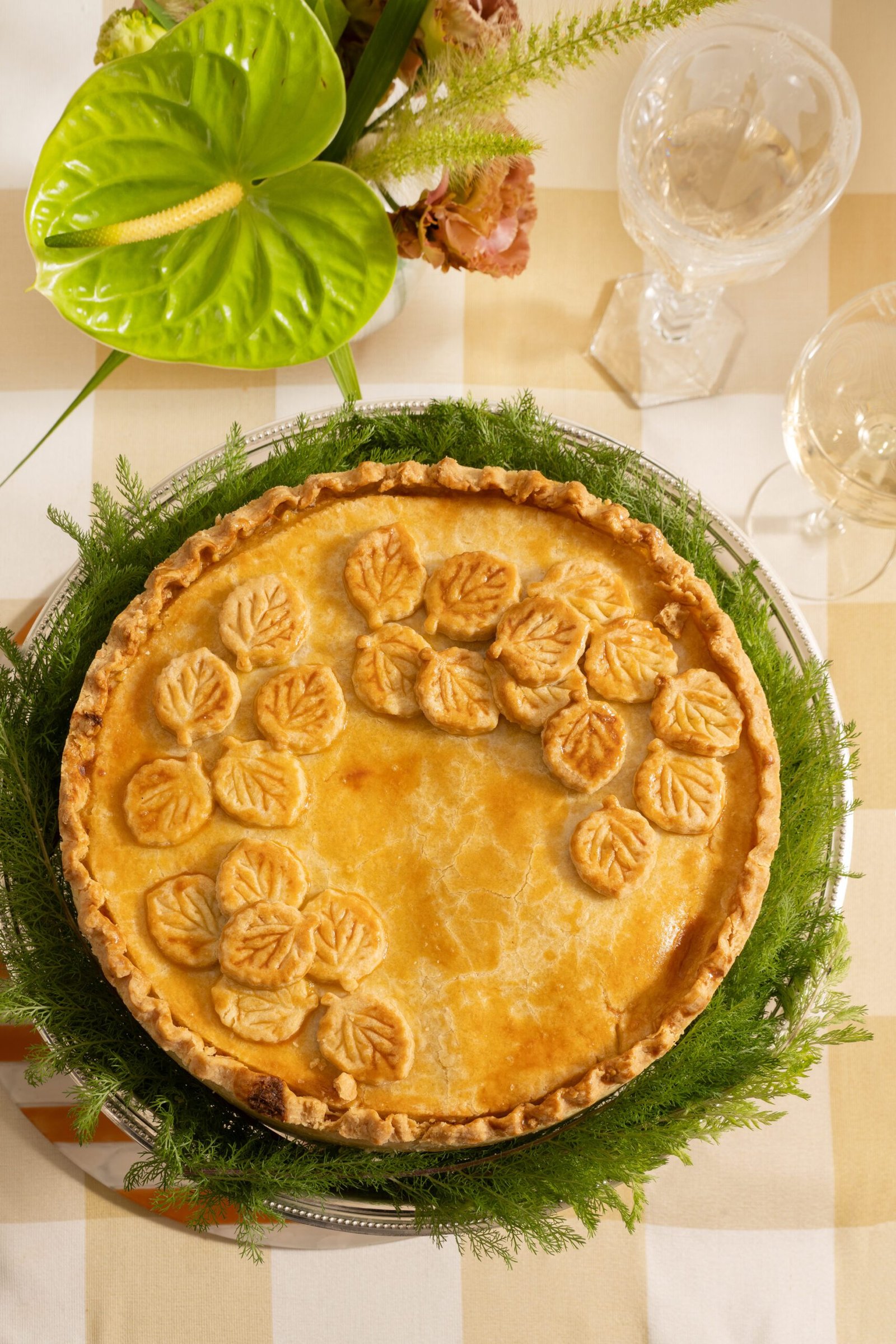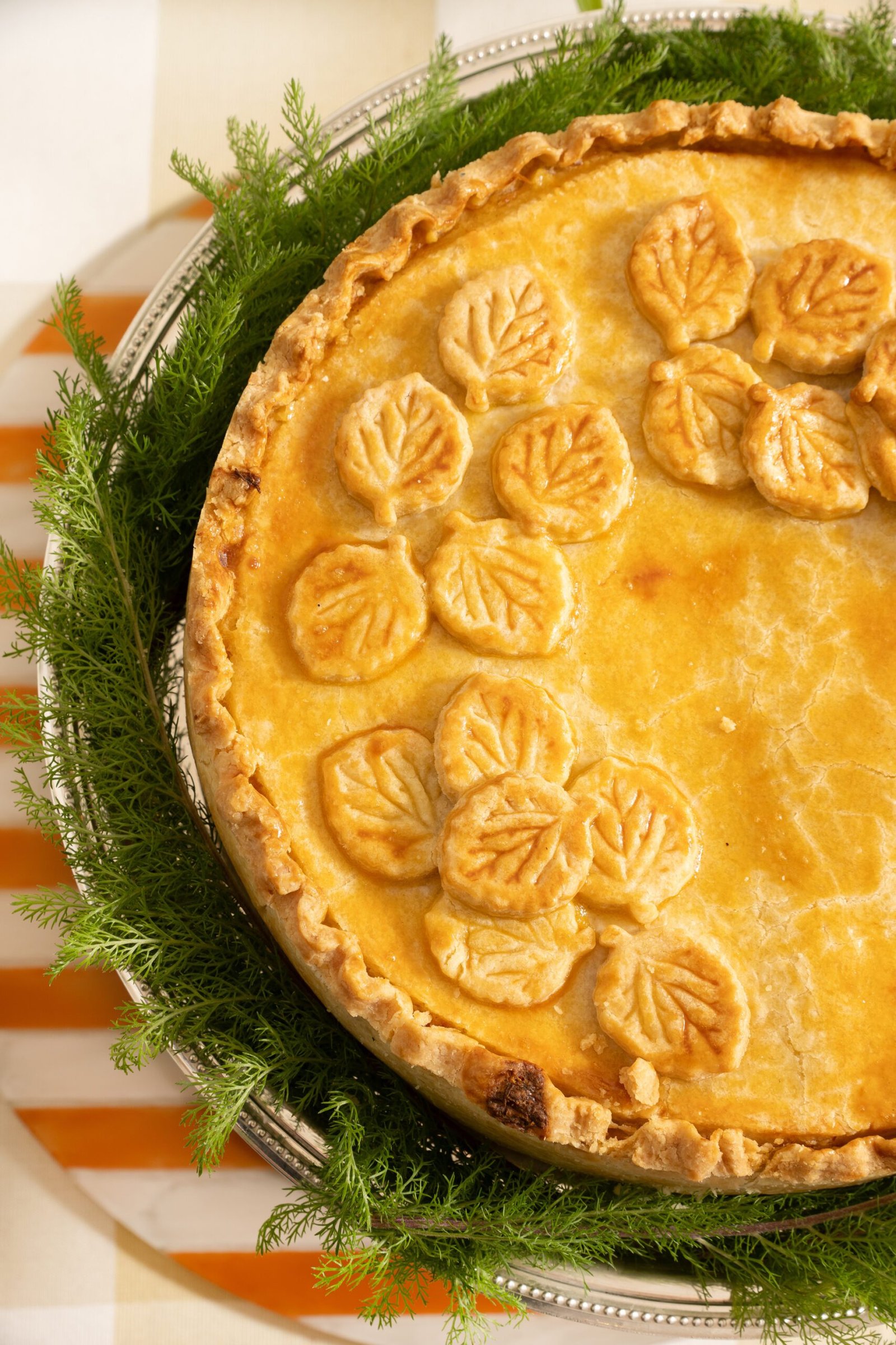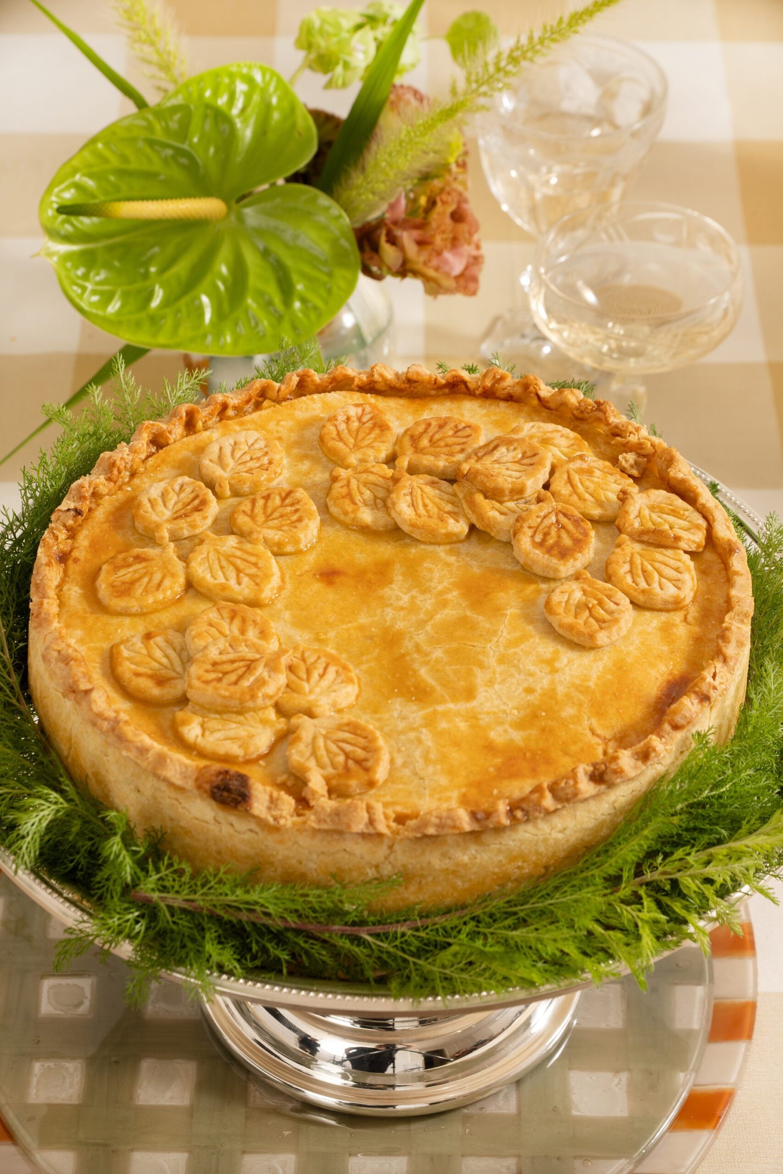 Clássica torta cremosa com recheio generoso de bacalhau desfiado e temperos suaves, trazendo tradição e conforto à mesa.