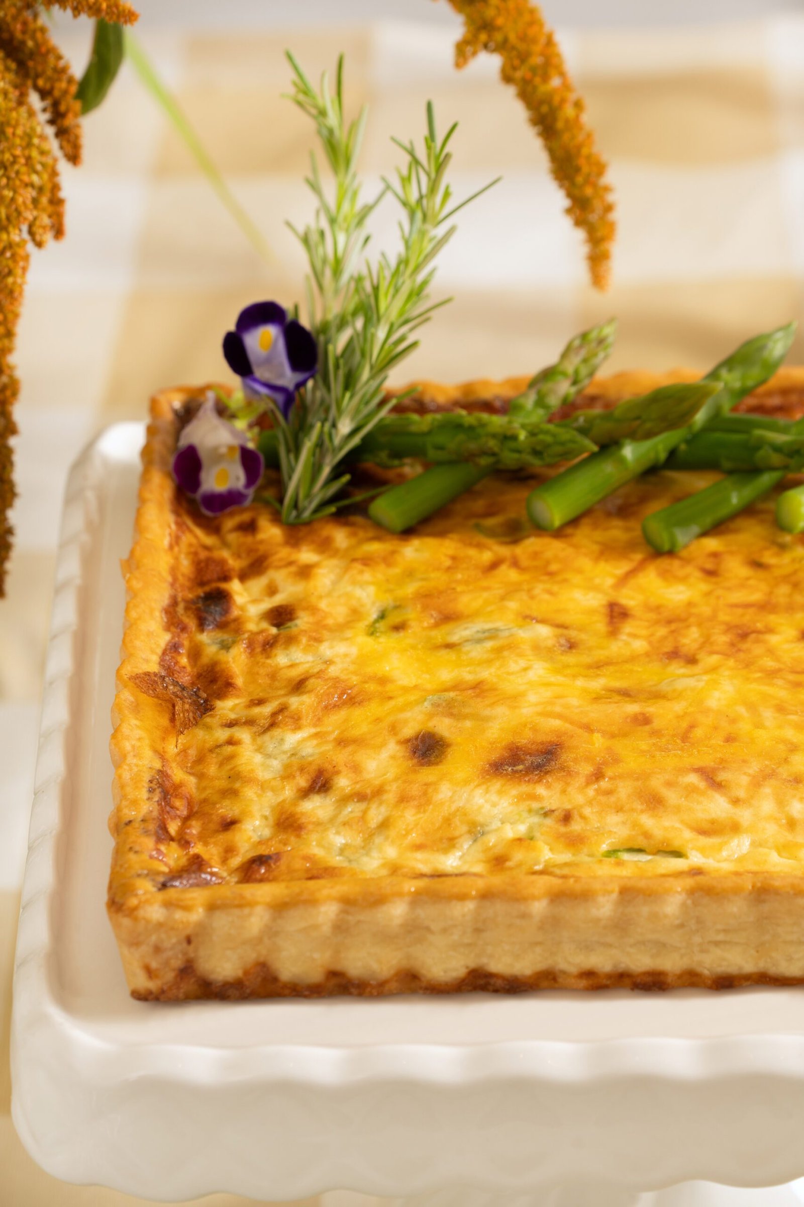 Massa amanteigada e leve, recheada com aspargos frescos e queijo emmental, assada até atingir textura macia e dourada.