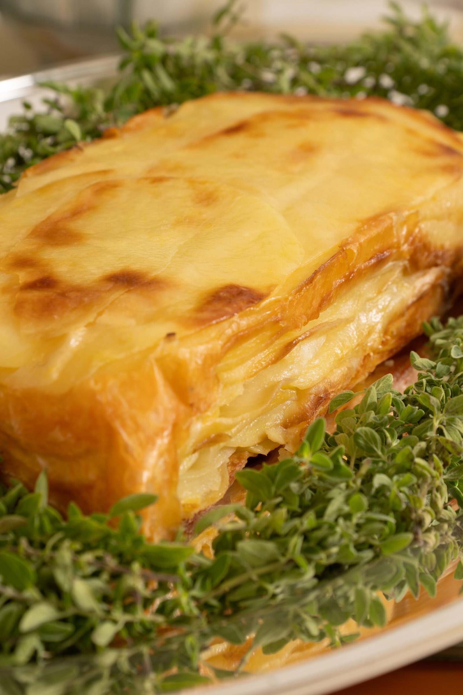 Camadas finíssimas de batata intercaladas com creme e queijo gruyère, gratinadas até formar superfície dourada e interior macio e envolvente. Um dos acompanhamentos mais queridinhos do nosso menu.