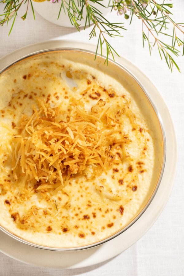 Após aquecido, transfira para uma travessa e finalize com a mandioca palha.