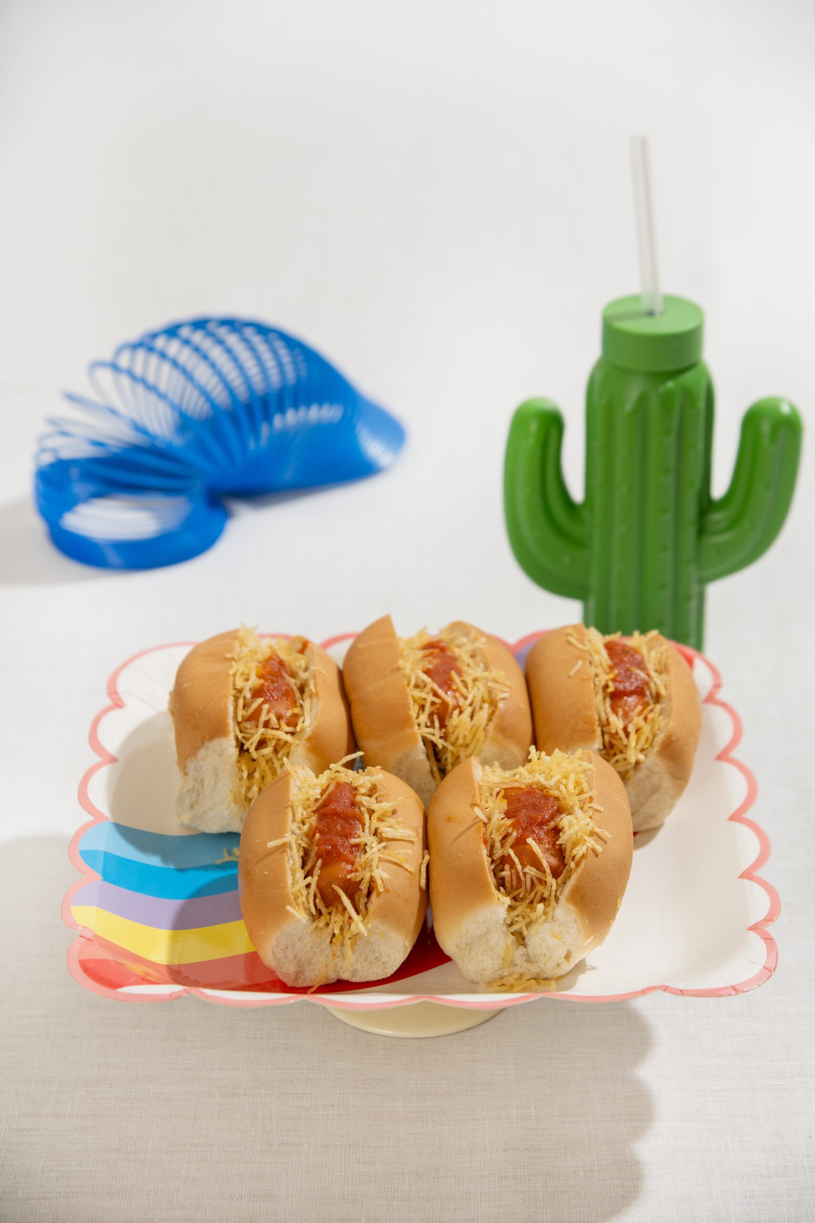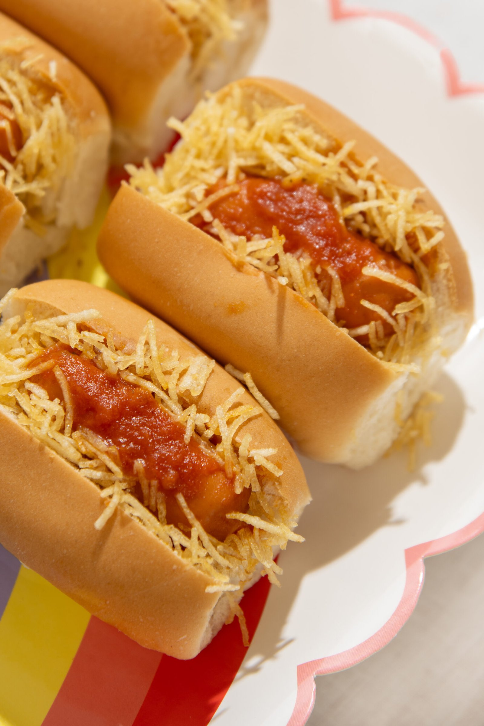 12 unidades mini hot dog com batata palha