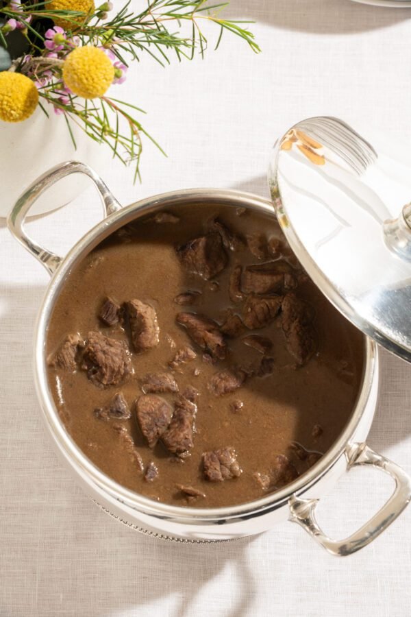 Manter refrigerado até o uso. Aqueça o picadinho de mignon em fogo baixo até ferver.