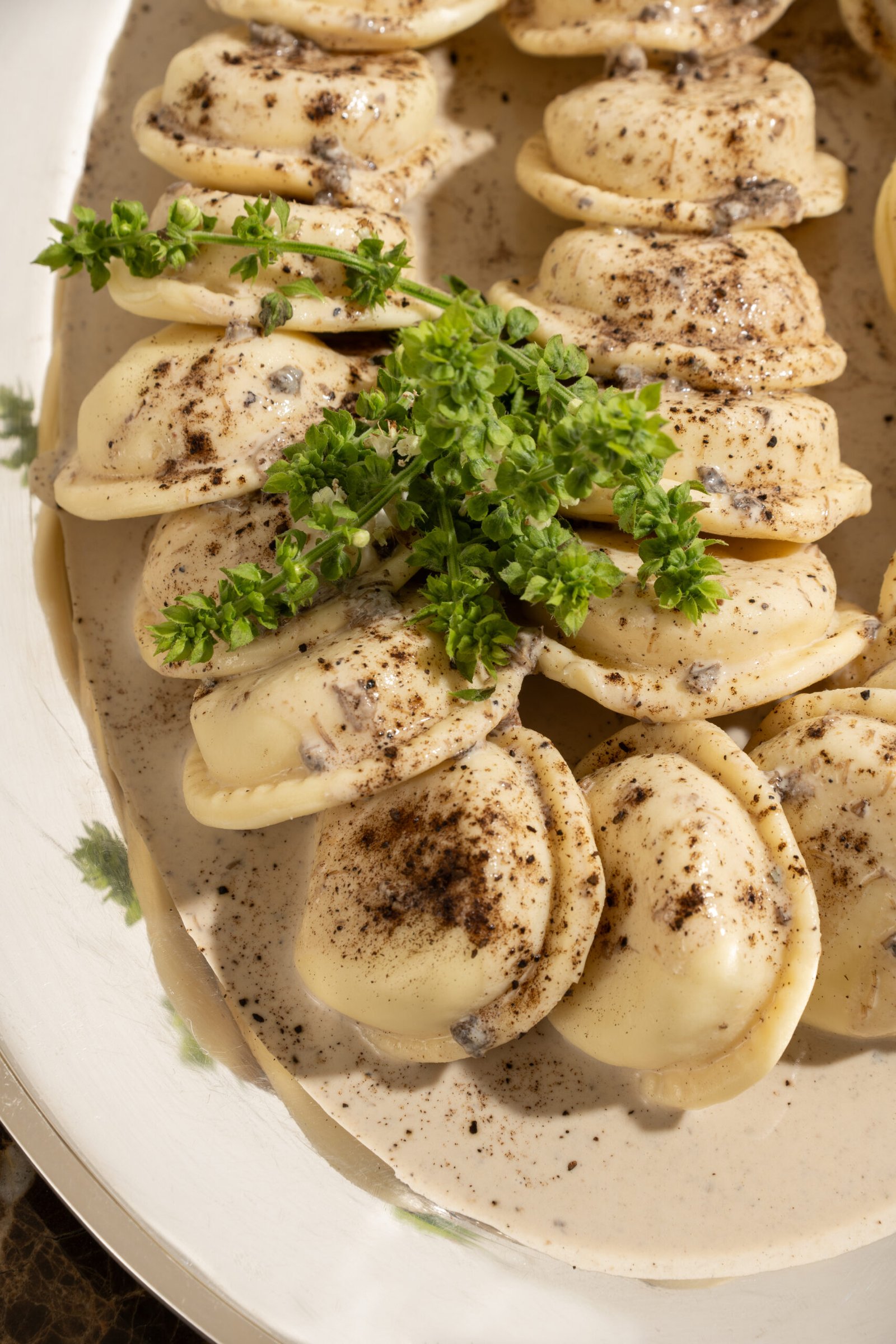 Recheio cremoso de muçarela de búfala em massa artesanal. Acompanha molho de cogumelos, ou o molho da sua escolha.