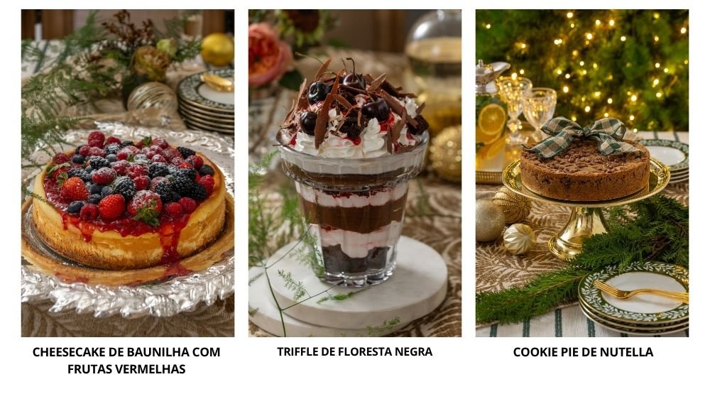 E, para coroar a experiência gastronômica natalina, nossas sobremesas trazem o encanto final. Difícil escolha, hein!